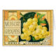 Vintage Illustration Obstkiste Kunstwerbung für Muscat Trauben. Die Werbung zeigt einen Haufen reifer, Bio, grüner goldgelber Trauben auf der Weinrebe der Thurber-Gesellschaft.