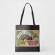 Schöne Tote-Taschen im Überdruck! Erhältlich in zwei Stilen und zwei Größen! Vintage Illustration Obstkiste Kunstwerbung mit einem Haufen reifer lila Bio Pflaumen auf einem Baumzweig, der in einem Obstgarten auf dem Bauernhof wächst. Retro-Werbung für Imperial Markenpflaumen. Felix Potin Miramont, Lot & Garonne Frankreich.