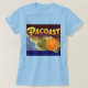 Vintage Illustration Fruchtkiste mit einer großen, reifen, Bio Orange mit Blume und einer Karte der Südküste des Staat von Kalifornien mit dem blauen Pazifik. Retro Werbung für Pacoast-Orangen, frische Zitrusfrüchte aus dem Bauernhof. Gesunde Ernährung mit Vitamin C.
