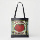 Schöne Tote-Taschen im Überdruck! Erhältlich in zwei Stilen und zwei Größen! Vintage Illustration Fruchtkäfigwerbung mit einer großen, roten, reifen Bio Tomate auf der Weinrebe. Retro-Werbung für Tomaten der Marke Defender in Dosen.