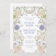 Featuring an exquisite hand-painted floral ornate frame, inspired by the intricate detailing of vintage engravings, the invitation showcases delicate blossoms and greenery, artfully arranged to create a captivating border that enhances the beauty of your wedding details. Embracing a harmonious palette of periwinkle, lilac, soft peach, and green, this invitation evokes a sense of romance and serenity, offering a fresh and inviting aesthetic. The elegant blue bell-colored font adds a touch of sophistication and grace to your announcement, and it can be easily changed to any color of your choice, allowing you to tailor the invitation to perfectly match your wedding theme and personal style.