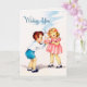 Vintage Geburtstagskarte mit einem kleinen Jungen und Mädchen, das einen Geburtstagskuchen mit Kerzen hält.