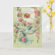 Eine schöne Vintage GeburtstagsDualkartenverarbeitung in den reizenden Pastellfarben kennzeichnet ein weißes Taubenfliegen mit den rosa und blauen Blumen in seinem Schnabel. Hinter der Taube ist ein weißer Umschlag, der in den rosa Blumengirlanden mit den Wörtern "Geburtstags-Grüße" und ein Wachs-Siegel schließt den Umschlag drapiert wird. Die Mitteilung innerhalb der Karte ist: "Sie werden immer an gedacht