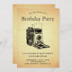 Mit dieser Vintagen Geburtstagsfeiereinladung laden wir Sie mit einer schönen Kamera und eleganter Typografie vor einem Vintagen Pergament-Hintergrund ein. Fügen Sie einfach Ihre Veranstaltungsdetails zu dieser einfach zu bedienenden Vorlage hinzu, um sie zu einer einmaligen Einladung zu machen.