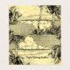 Gefaltete Visitenkarten mit Retro-Skript und Blockbriefe über eine tropische Vintage Ätzung von Palmen auf einem Sandstrand und schönen Wolken über ruhige Ozeanwellen auf einem Imitat Pergament Hintergrund.