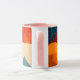 A retro-inspired abstract artwork blending circles, triangles, and squares in vibrant blue, orange, and red tones with a distressed texture.