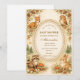Dieses charmante Wald-Baby-Shower-Design zeigt entzückende Waldtiere, die sich um einen zarten, vintage Rahmen versammeln und eine warme Szene aus einem Bilderbuch schaffen, die perfekt ist, um ein kleines Wesen auf dem Weg zu feiern. Süße Illustrationen eines Hasen, Waschbären, Eichhörnchens und einer Eule sind umgeben von winzigen Pilzen, Kiefernzapfen, Wildblumen und sanfter Waldgrünpflanzung. Die warme, neutrale Farbpalette und der sanfte Wasserfarben-Stil verleihen dem Design ein gemütliches, nostalgisches Kinderzimmer-Feeling, inspiriert von klassischen Kinderbuchillustrationen. Perfekt für naturthematische Baby-Shower-Partys, Wald-Feiern oder rustikale Waldversammlungen.