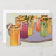Vintage Illustration von Getränken und Getränken mit einem Sortiment an vereisten Getränken und Fruchtsaftgetränken in verschiedenen Geschmacksrichtungen und Farben auf einem Tablett.