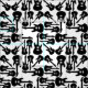 Ein Design aus schwarz-weißer Musik, mit schwarzer Silhouette-Illustrationen auf weißem Hintergrund.