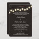 Der Strand von Glühbirnen im Vintagen Industriedesign schmückt diese skurrile Hochzeitseinladung mit dunkelbraunem Hintergrund oder wählt eine andere Hintergrundfarbe aus.