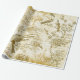 Vintage Gold Beige Birds Blume Französisch Script Geschenkpapier