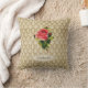 Ein elegantes Vintages viktorianisches Golddamast-Musterkissen mit einer schönen rosa Rose. Personifizieren Sie dieses weibliche Rosa und Goldklassischen Entwurf, indem Sie Ihren Namen addieren.