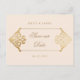 Vintage vergoldete Imitate verzieren dekorative Ornamente mit Skript-Schriftart gepaart mit Serifen für Extra Eleganz. Diese Save the Date Postkarte ist Teil der gesamten Hochzeitssuite, so Karo unser Geschäft für weitere Artikel aus dieser Sammlung.
