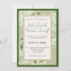 Verfügt über einen goldenen Rahmen auf Vintagen grünen Blätter mit Skripttypografie und eleganter Textur. Passen Sie die Karte mit Braut, Bräutigam-Namen Datum, Ort und Uhrzeit der Hochzeit an.