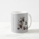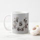 Diese Tasse ist mit einer Vintagen Weinrebe auf beiden Seiten geschmückt. Die schwarz-weiße Skizze von Trauben und Blätter ist Set vor einem hellgrauen Hintergrund. Ihr Monogramm wird in jedem Traubenrahmen zentriert angezeigt. Ihr Name erscheint vertikal in der Mitte. Personalisieren Sie schnell und einfach den Namen und das Monogramm.