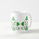 Eine Tasse mit einem Vintagen Kleeblatt-Muster in irischen Grüntönen mit drei blättrigen Nelken. Klicken Sie auf Anpassen, um Ihren Namen oder Ihre benutzerdefinierte Nachricht hinzuzufügen, Hintergrundfarben zu ändern und mehr.
