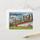 Dies ist eine klassische Postkarte im Vintagen Stil mit dem Satz "Grüße aus Nebraska". Die großen, stilisierten Briefe von NEBRASKA enthalten jeweils eine einzigartige Szene oder Sehenswürdigkeit aus dem Staat, einschließlich der Hauptstadt des Staat, ländlicher Bauernhöfe und historischer Gebäude. Der Vordergrund zeigt eine pastorale Szene mit Schafweiden auf einem grünen Feld. Das Design strahlt ein nostalgisches Ambiente aus, das sich durch seine Retro-Farbpalette und den kühlen Schriftart auszeichnet. Es eignet sich perfekt für Produkte wie Postkarten, Plakate und T - Shirt für alle, die die uralte Reisemöglichkeit oder den wunderschönen Staat Nebraskas Liebe haben.