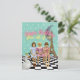 Die lustige und funky modifizierte Kunstvignette umfasst ein Trio von Schülerinnen mit Vintagem Foto, eine Ente mit Krone, den Eiffelturm, einen Halbmond und "Happy Birthday von uns allen" in Rosa und Gelb Neontext