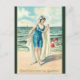 Diese Postkarte zeigt eine Vintage Darstellung einer Frau, die einen Anzug aus der Zeit Edwards VII trägt, mit Strandtuch am Strand, während eine andere im Wasser schwimmt. In der Ferne sind ein Boot und Vögel. Die Originalkarte wurde 1908 verschickt. Dieses kann für jeden Anlass verwendet werden: Weihnachten, Geburtstage, Neujahr usw. Genießen Sie Ihre neuen Vintagen Grüße von der Seaside Postcard!