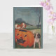 Retro / Vintage Halloween Grußkarte. Adorable Welpen und niedliches Kätzchen spielen in einer Jack-o-Laterne! Hunde und Katzen sind heute Abend draußen, damit ihr Junge aus den Augen behalte!