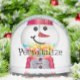 A vintage gumball machine snowman snow globe filled with bubblegum and ready to personalize on front and back. In a color of cheerful red. A nostalgic sweet treat.
