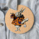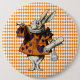 Ein Vintages Weiße Kaninchen, als Herald gekleidet, zu Halloween in Orange, Schwarz und lila.