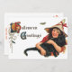 Vintage Halloween-Grüße, Kinderhexe mit Katze Einladung