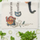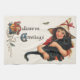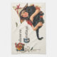 Vintage Halloween-Grüße, Kinderhexe mit Katze Geschirrtuch