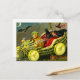 Holiday Postcard mit Raphael Tuck & Sons Hallowe’en Postcard Series (1908). Eine klassische schwarze Katze und Hexenfahrt in einem traditionellen Gemüsewagen. Ein lächelnder Kürbismann fährt, und vor einem halbmondförmigen Mond fliegt eine unheimliche schwarze Fledermaus. Wunderbar für Halloween-Liebhaber und alte Sammler!