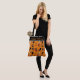 Eine fantastische Tasche für die Halloween-Saison. Dieser Totbeutel weist ein Vintages Halloween-Muster auf einem farbenfrohen orangen Hintergrund auf. Es gibt einen schwarz-grauen Rahmen mit dem Text "Happy Halloween". Diese Tasche ist in einer Größe, aber auch in mittlerer Größe erhältlich.