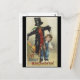 Niedliche und farbenfrohe Halloween-Postkarte mit einem spielerischen kleinen Jungen und einer Skarecke. Das Bild ist eine Wiedergabe einer Vintagen Postkarte.