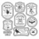 A hauntingly detailed collection of vintage-style Halloween labels featuring fictional potions and magical ingredients: “Witch’s Brew,” “Zombie Brew,” “Poison,” “Crow’s Foot,” “Wool of Bat,” and more. Each label is adorned with gothic illustrations—skulls, bats, spiders, and broomsticks—evoking old-world apothecaries and eerie enchantments. Perfect for spooky season collections, themed decor, and designs that celebrate the mysterious charm of Halloween folklore.