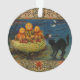 Halloween Pumpkins Jack-O-Lantern Black Cat - Diese antike Abbildung einer schwarzen Katze und halloween Kürbis machen ein kurzes Halloween-Geschenk. Das Bild stammt aus einer antiken Halloween-Postkarte. Diese Beängstigende Halloween-Karte enthält drei lustige Jack-o-Laternen Kürbis. Die geschnitzten Pumkins sitzen auf einer großen Wassermelone, in einem Halloween-Abend mit einer schwarzen Katze. Im Hintergrund ist ein Halbmond, der die Stimmung für ein beängstigendes Halloween-Party bestimmt. Die schwarze Katze küsst, wie er die Kürbisse sieht.