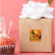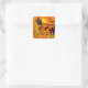 Viereckige Aufkleber mit einer Vintagen traditionellen Halloween-Szene aus Katzen, Fledermäusen, Kürbissen, Spuk Haus.