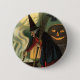 Vintage Illustration Halloween Urlaubsdesign mit einer bösen Hexe, die ihre Zauberhexe in einem schwarzen Kessel umwirbelt. Ein Vollmond, Fledermäuse, eine Katze und eine Jack-oder-Laterne mit einem geschnitzten beängstigenden Gesicht machen dieses Halloween-Bild zu einem vollendeten Erlebnis! Dieses Halloween und in dieser Braue wird die Hexe viel Glück für Sie rühren.
