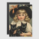 Vintage Halloween-Süsse in großen spitzen Hut mit schwarzen Kätzchen. Magnetkarte für alle, die Lieben von Vintage-Bildern, Hexen und schwarzen Katzen ___________ Das Vintage Aussehen wurde von Canva AI erzeugt.