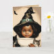 Vintage Halloween-Süsse in einem großen spitzen Hut mit zwei Kätzchen "Witching you a very Spuk Halloween!" ist ein lustiges Zitat mit einem alten textilen Hintergrund. Ideal für alle, die Lieben von Vintage-Bildern, Hexen, Katzen und Wortspielen.No5-Version bietet ein niedliches afroamerikanisches Kind . __________ Das Vintag-Look Bild wurde von Canva AI und Alma Wad, dem menschlichen Designer, erstellt.