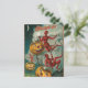 Vintage Halloween-Teufel fliegen um Jack-o-lanters. Vintage Wünsche aus einer wertvollen kleinen Erinnerung Halloween Vergangenheit. Klicken Sie auf Anpassen und fügen Sie Ihren eigenen Text hinzu, erstellen Sie eine Party Einladung oder Geburtstagsgrüße.