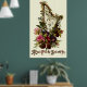 Dies ist ein digital erweiterter Ausdruck aus einem antiken 1874 "Music Fills The Soul With Joy" L. Prang & Co Chromolithograph mit einer Harfe, die in Blume eingenäht ist, und schöner Kalligraphie. Die Hintergrundfarbe kann angepasst werden.
