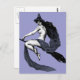 Diese farbige Vintage Abbildung zeigt eine saure Hexe, die auf einem Bromstick reitet.