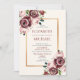 Dieses moderne und trendige Hochzeitsinklusive-Design besticht durch Vintage Aquarellflorale in Bordeaux und Rosa mit einer vergoldeten Textbox aus Imitat und einem überaus blumigen Motiv auf der Rückseite. Copyright Elegant Invites, alle Rechte vorbehalten.