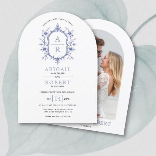 Elegant vintage blue floral crest monogram weddingDesignt von Modern Designs