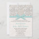 Vintage Spitzen- und Leinenfein-Einladung zum Hochzeitsfeiern mit einem antiken Viktorianischen Damast und bedrucktem Band- und Bogen-Design. Fügen Sie das Monogramm des Paares und Namen auf der Rückseite dieses eleganten und ladyähnlichen Einladungen. Entworfen von Chrissy H. Studios, LLC.Alle Rechte vorbehalten.