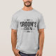 Dieses lustige T-Shirt für den Bräutigam zeigt „Groom's Crew“ in einer fetten Retro-Serifschrift. Subtile Schmetterling- und Schnurrbart-Icons ergänzen den Text und geben dem Shirt eine klassische, spielerische Atmosphäre. Das monochrome Schwarz-auf-Grau-Design ist perfekt für Fotos auf dem Junggesellenabschied oder als Accessoire für das Probedinner, um die Hochzeitsgesellschaft im Vintage-Stil zu vereinen.