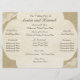 Dieses Vintage Aussehen-Hochzeitsprogramm, das auf unserer größten Einladung erstellt wurde, ist das perfekte Kompliment für unsere antiken weißen Spitzen und Einladungen mit Burlap. Ändern Sie den Text nach Bedarf, und wählen Sie einen Papierstil aus. Empfohlen auf Filz- oder Leinenpapier.