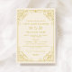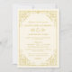 Elegante und glamouröse Art Deko Hochzeitseinladungen inspiriert durch verzierten Vintagen Gatsby Stil und den rauschenden 20er Jahren. Das Kartendesign zeichnet sich durch ein Elfenbein- und Goldfarbschema, verzierte Zierrahmen und -muster und eine stilvolle Typografie aus, die völlig personalisiert sein kann.