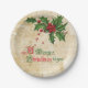 Vintage Holly Berries und frohe Weihnachtsbotschaf Pappteller