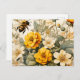 Vintage Honigbienen in pflanzlichen Stoffen Postkarte