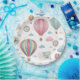 Whimsical watercolor pattern paper plate featuring vintage hot air balloons, compasses, clouds, stars, travel journals, and paper airplanes on a clean white background. Ideal for travel lovers, adventure seekers, vintage enthusiasts, and anyone who loves dreamy exploration-inspired aesthetics.