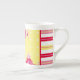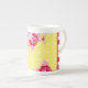 Diese Vintage Hütte Knochen China Tasse bietet eine digitale Kunstschicht von Rose mit passenden Streifen für ein Shabby Chic-Look.